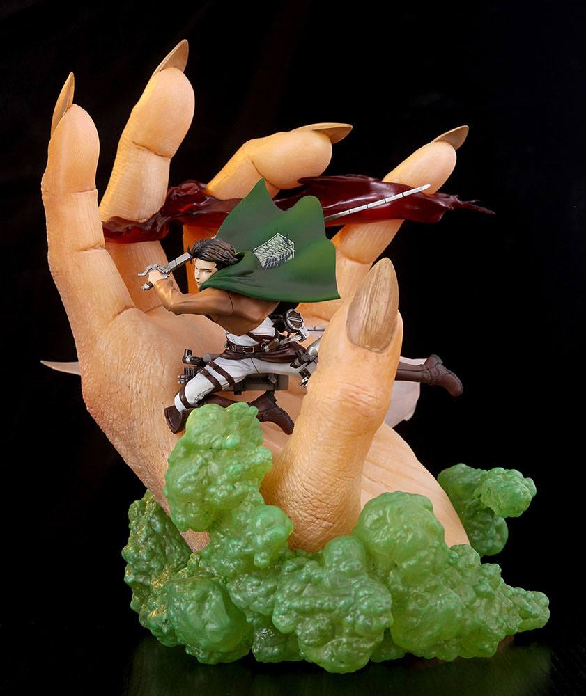 This massive diorama actually consists of 3 figures, Eren Yeager - Attack Titan, Levi Ackerman, and Mikasa Ackerman.
