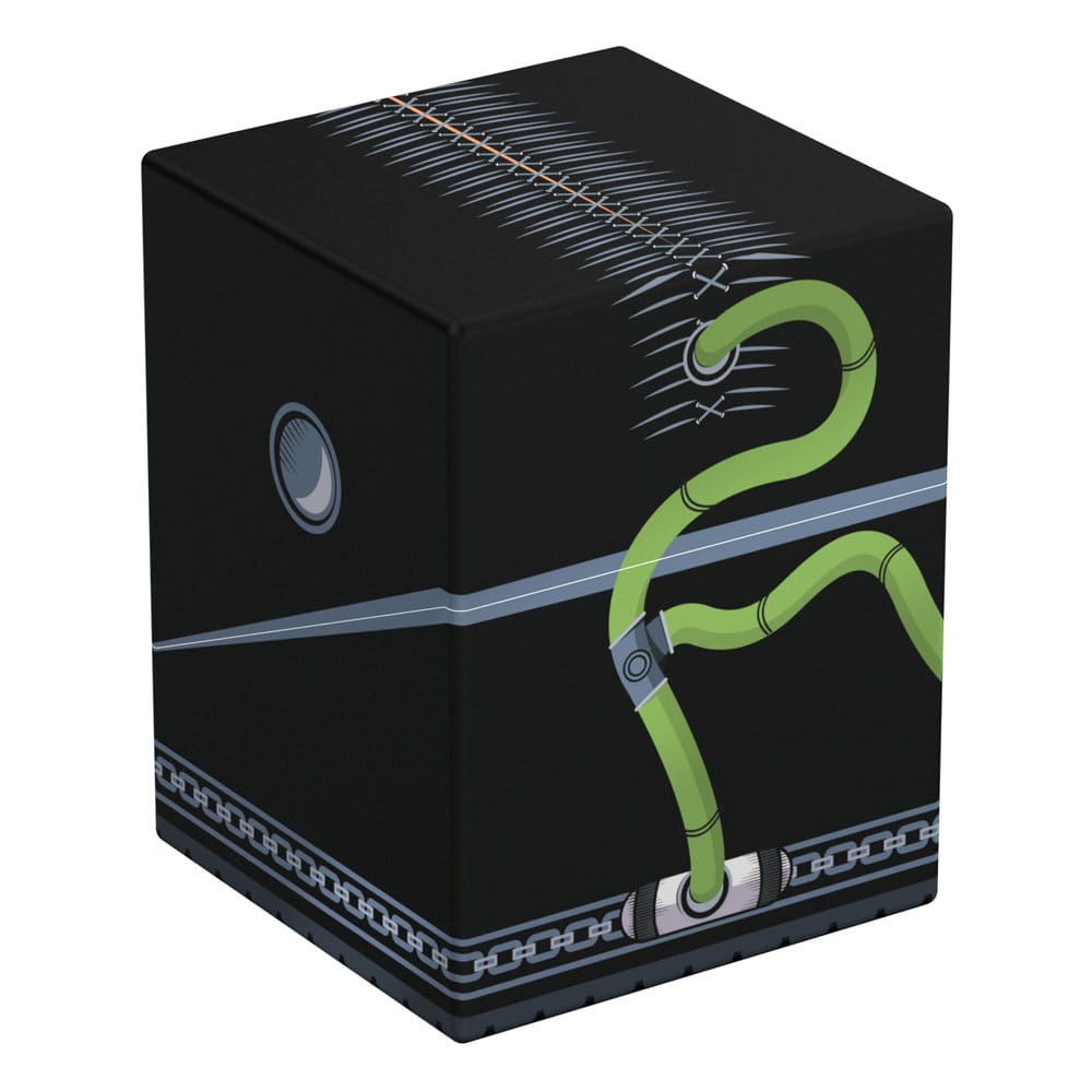 Collectible box for storing TCG decks, tabletop gaming accessories, and/or collectibles. The Bane Squaroe from the Batman: Gotham City edition holds up to 100 cards in double protective sleeves if used as a deck box. Squaroes are made from 78% renewable resources and fit perfectly into the separately available Collectors Case.