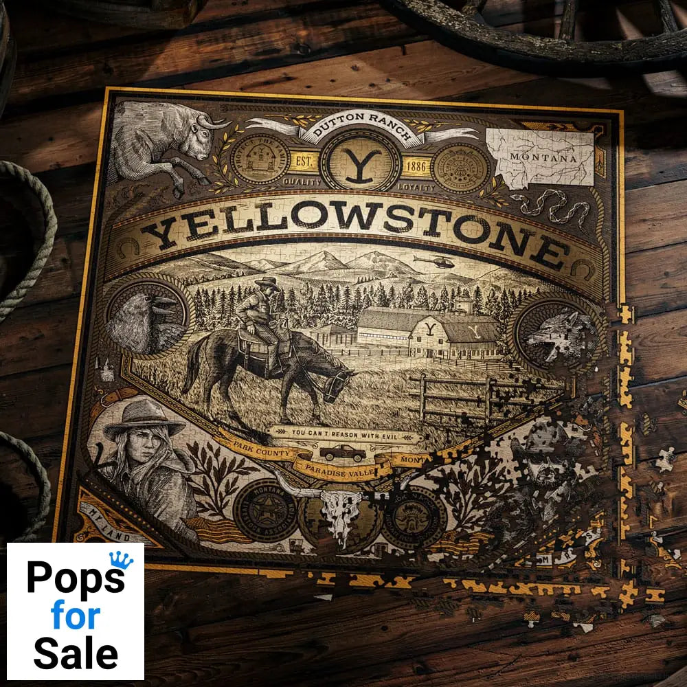 Explore the rugged frontier of Yellowstone like never before with a 1,000 piece jigsaw puzzle that brings the Dutton Ranch to life in intricate detail. Featuring gold foil details and tons of easter eggs from the series.