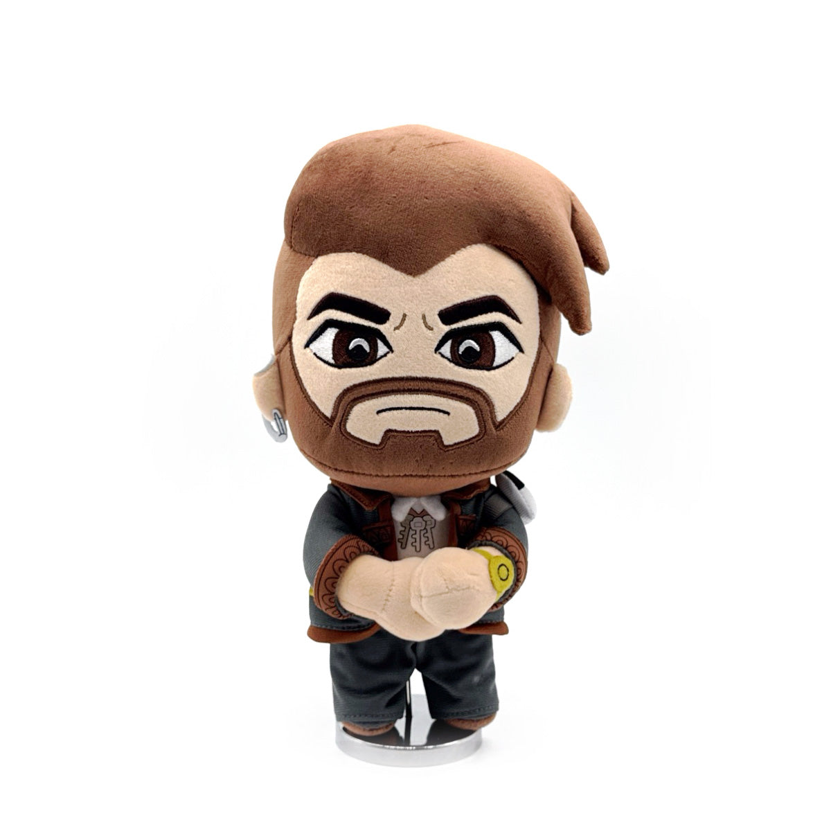 Are you ready for romance? Because Dorian’s arrived at Youtooz and he’s ready for a date! If you can get him to ‘open up’ that is! Standing at 9 inches tall and clasping his hands together at the front, serious brown eyes look out from above a thick beard as neat hair sweeps to the side, and a chain lock ear ring hangs from his right ear. With a trio of keys hanging from his neck and a keypad on the left shoulder, he wears a grey jacket with ornate brown trim and matching pants, along with a golden doorknob watch. This plush is packed to the seams with 100% PP cotton and is made of minky and tricot materials with accents of felt, absolutely perfect for cuddling or dating!