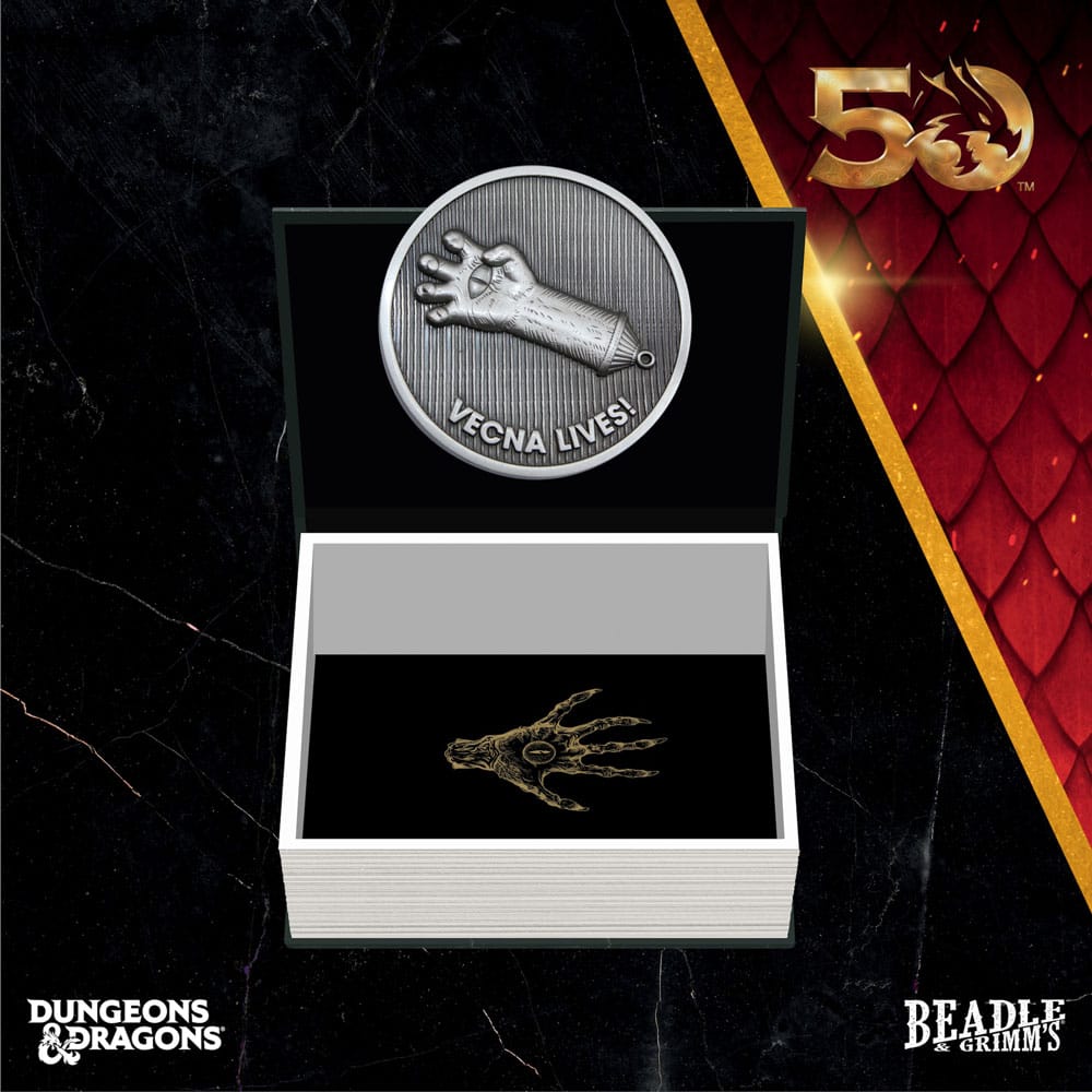- Two-inch collectible metal coin commemorating the adventure and the 50th anniversary of D&D