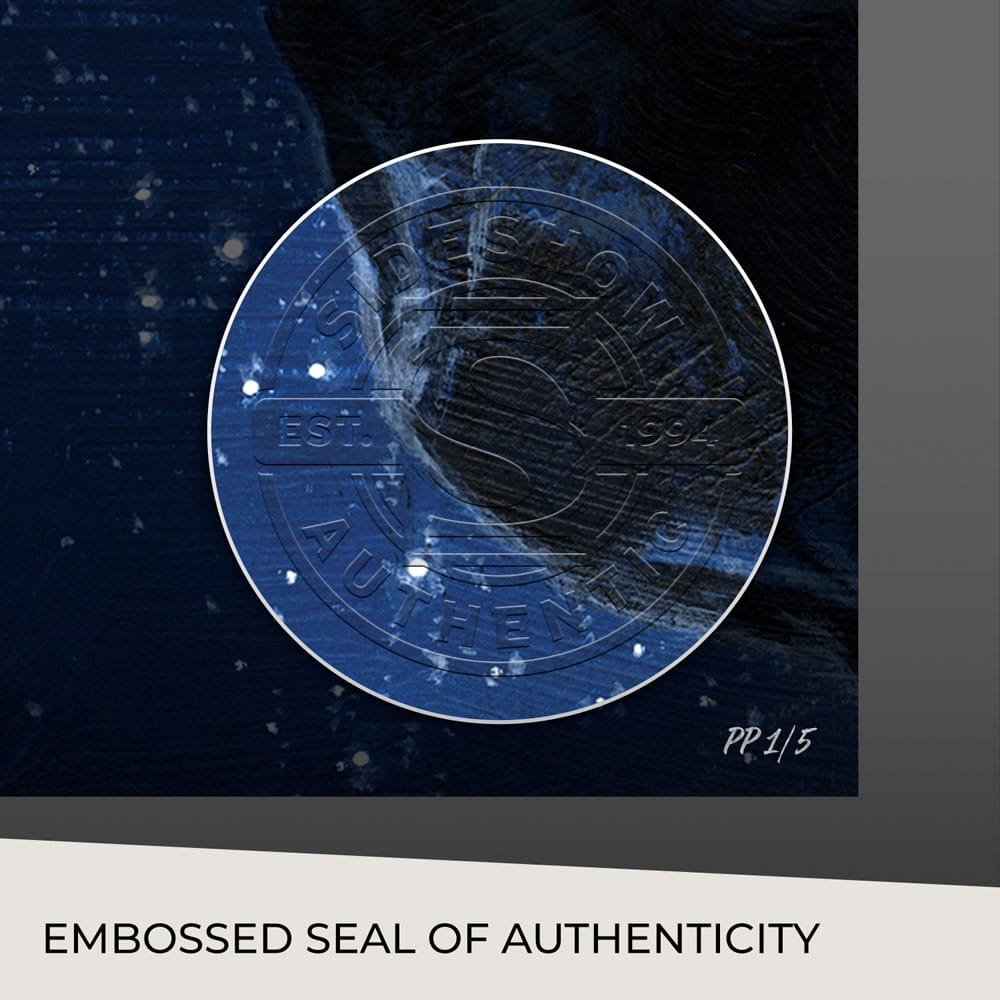 Originally created as a variant cover for Silver Surfer: Ghost Light #1 (2023), written by John Jennings for Marvel Comics, this Silver Surfer art is now available to fans as an unframed giclée print or in a custom framed presentation. Each Silver Surfer: Ghost Light Fine Art Print features an embossed Sideshow Seal of Authenticity as part of the limited edition of 175 pieces.