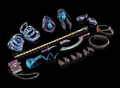 One of the oldest living warriors in Mythoss, Azza Spiritbender's past was revealed during Poxxus' attack on the Tower of Bassylia. This mysterious Shaeyde necromancer was one of the otherworldly beings summoned from the Nethergate by Poxxus during the First Age. After escaping banishment, Azza sought help breaking free from the Dark Four. Complex spells were tattooed onto her skin, allowing her to gain her freedom. During Poxxus' ambush, Azza called upon the spirits of those who had once roamed the halls of Ophidionn, asking them to join the battle against her former master. Together, they helped chase the Circle away, and prevented the Convocation from total destruction.